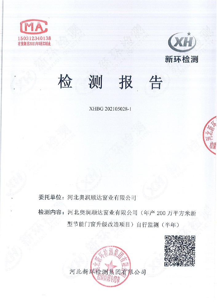 河北奧潤順達窗業有限公司工業園自行監測報告 XHBG 202105028-1